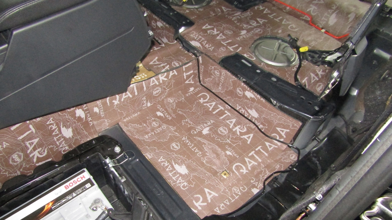 Toate materialele de tip sandwich se vor aplica peste stratul 1, materiale de tip vibro-absorbante, si niciodata direct pe tabla. STP Qattara se aplica: Podeaua din fata.