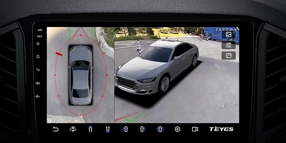 Bucura-te de ecosistemul Teyes cu navigatiile CC3 360. Unitatea vine la pachet cu un sistem de patru camere destinate sa redea împreuna o imagine panoramica de 360 grade. Noua navigatie CC3 360 este îmbunatatita cu o placa de baza care suporta functii suplimentare pentru redarea înregistrarilor provenite de la cele patru camere: camera fata, camera spate, camera stânga si camera dreapta.