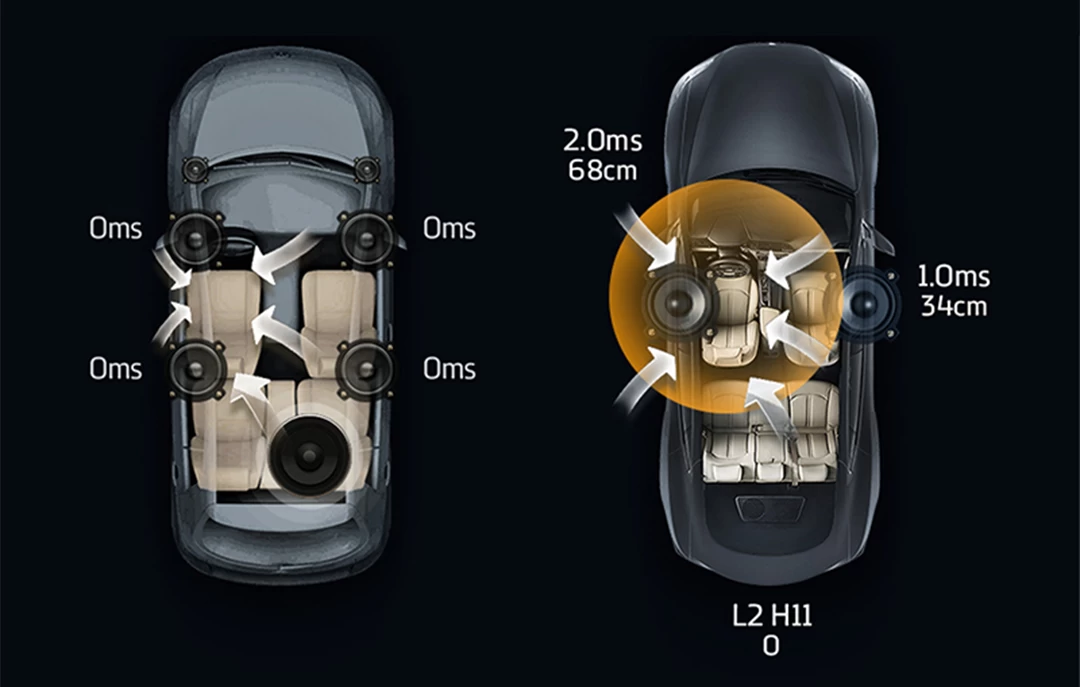 Acum poti controla momentul când difuzoarele redau sunetele, oferindu-ti experienta unei scene de concert, în propria masina.