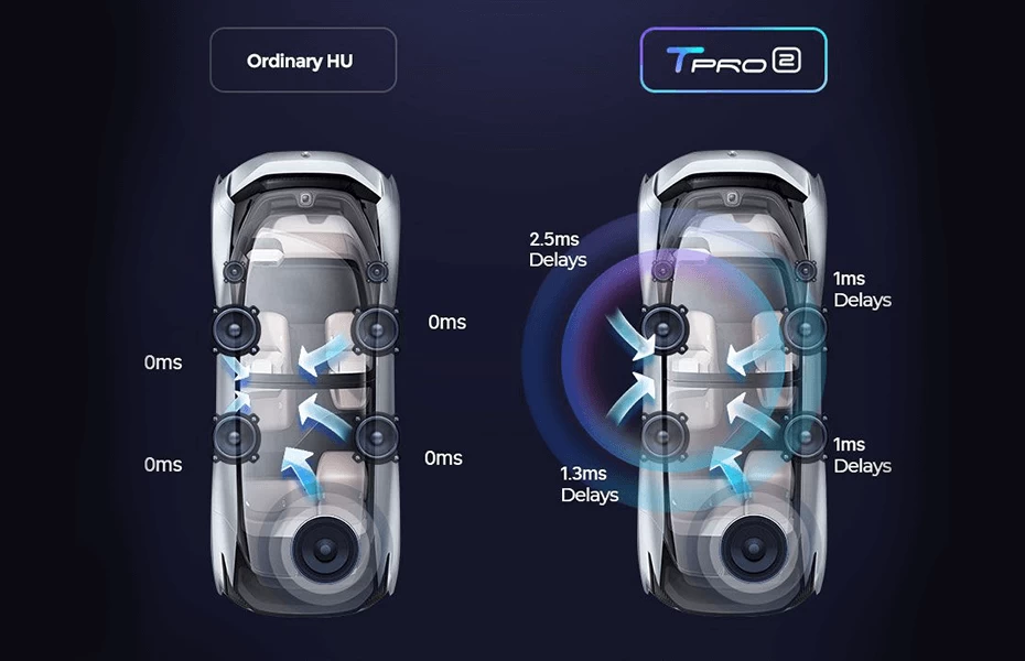 Dinamica de ascultate crescuta, datorita sincronizarii sunetului în directia dorita. Acum poti controla momentul când difuzoarele redau sunetele, oferindu-ti experienta unei scene de concert, în propria masina.
